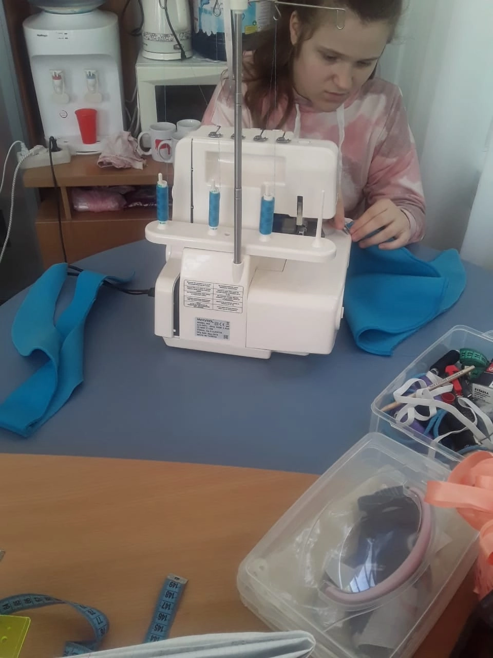 По субботам в нашем офисе подопечные под руководством опытного наставника волонтера Людмилы постигают премудрости швейного дела.